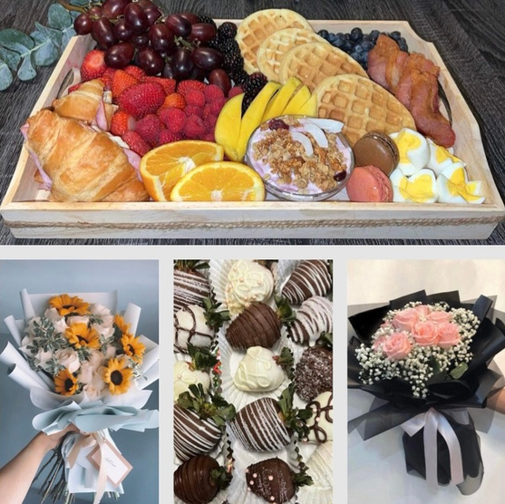 Please contact us, anything can be customized we have plenty of flavors on strawberries coats and variety on bouquets, for your brunch box we can add almost any breakfast compliment.